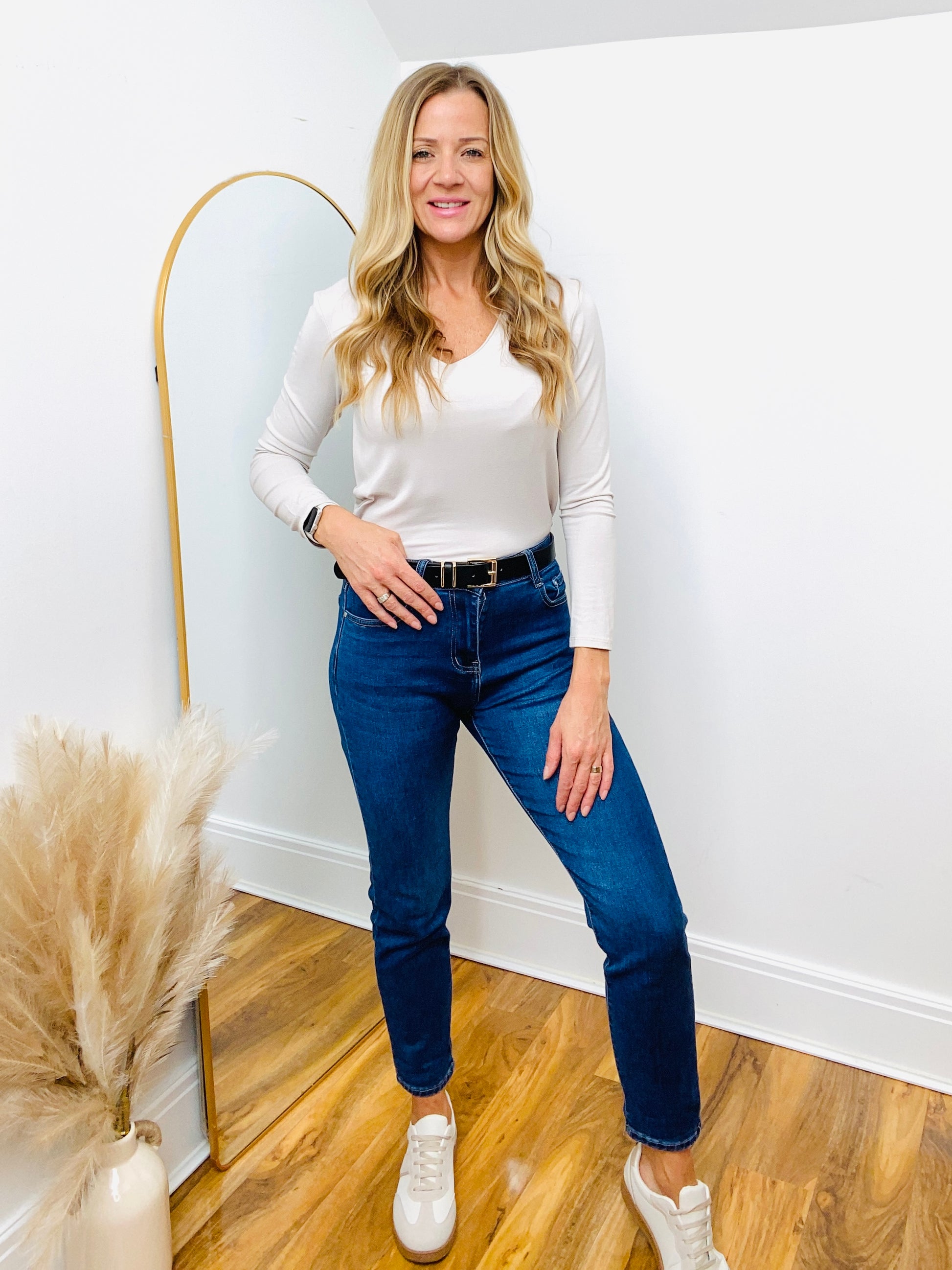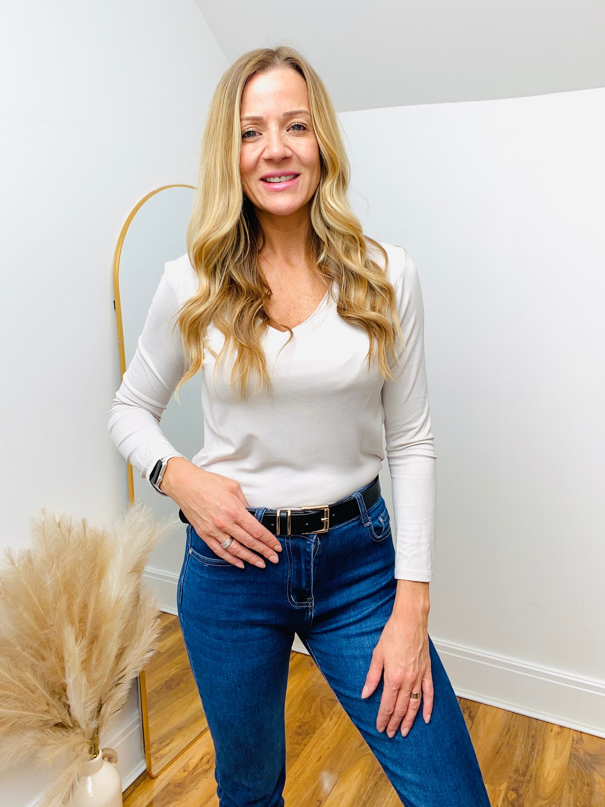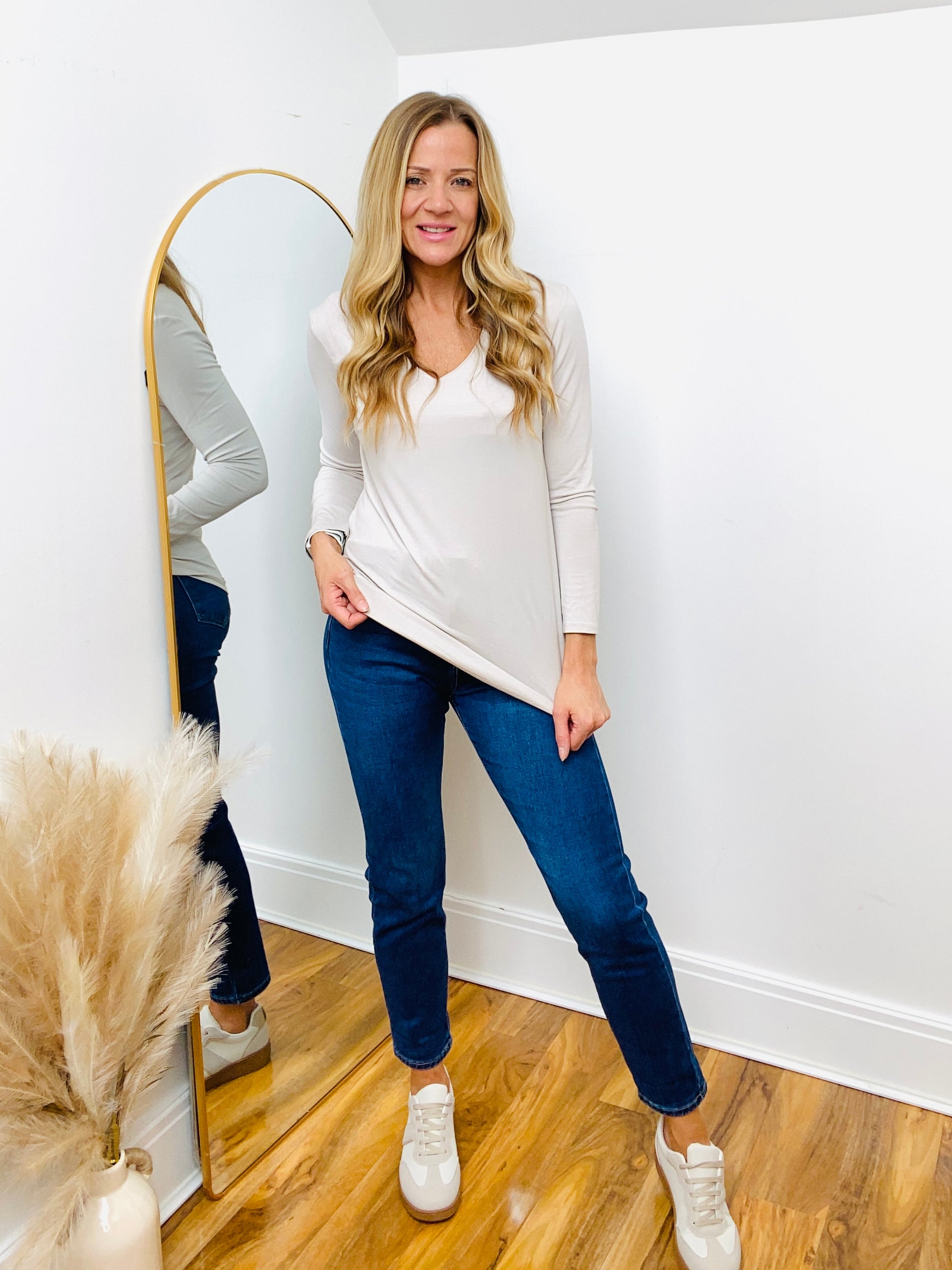 MAISE - Beige Long Sleeved V neck Double Layer Top