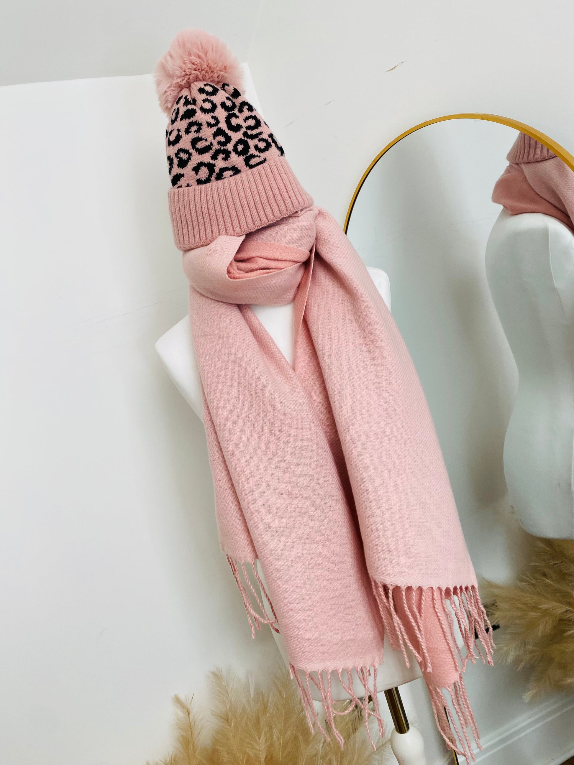 Pink Leopard Fleece Lined Hat