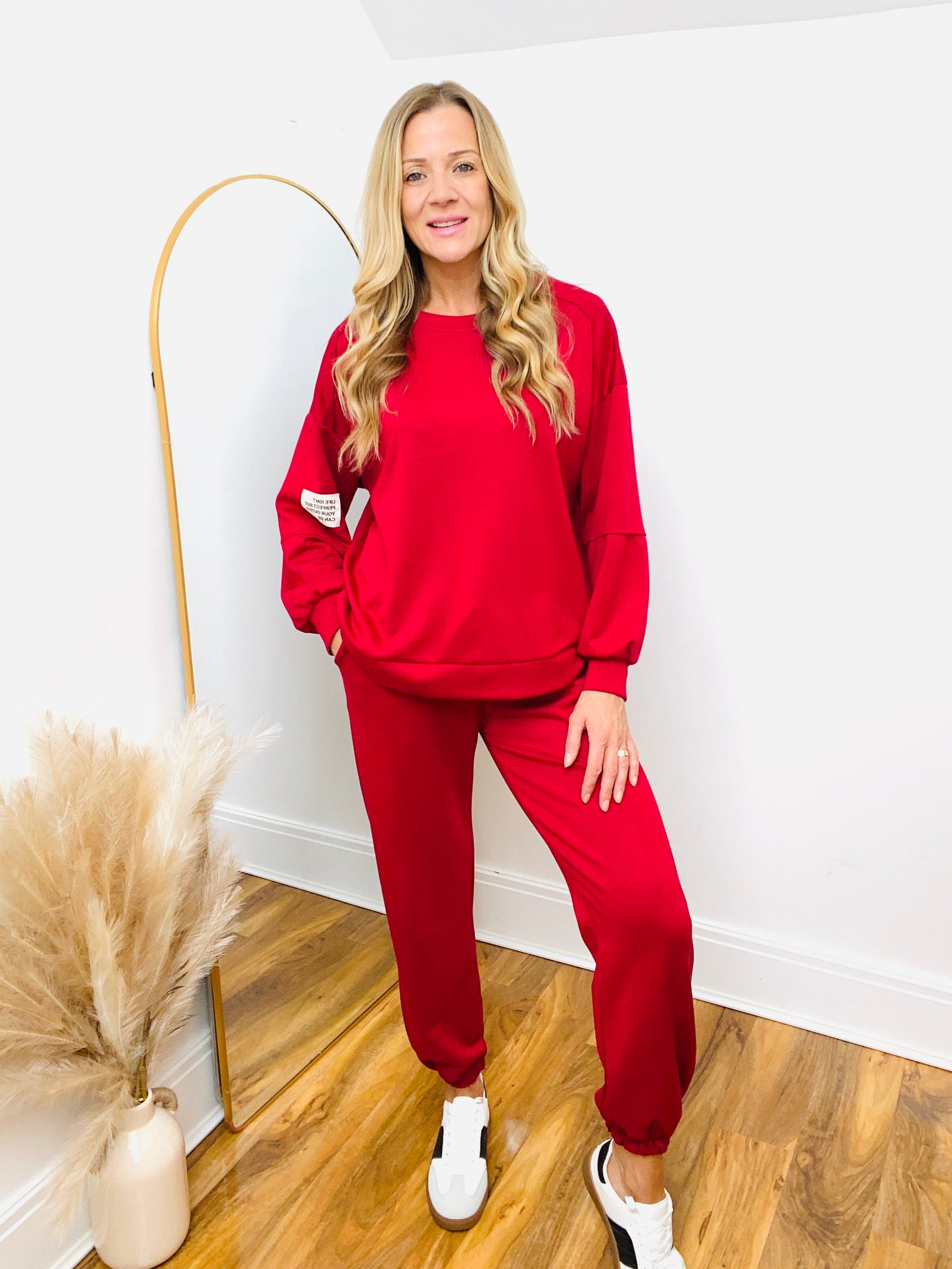 SHELLEY Wine Red Sweatshirt & Cuffed Bottom Jogger Co-ord Set